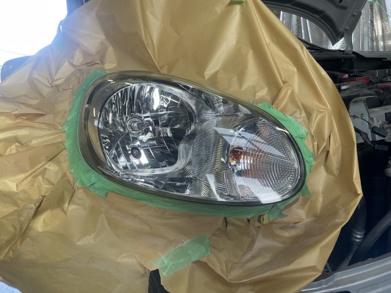 ニッサン マーチ ヘッドライト磨き 入庫時 運転席側