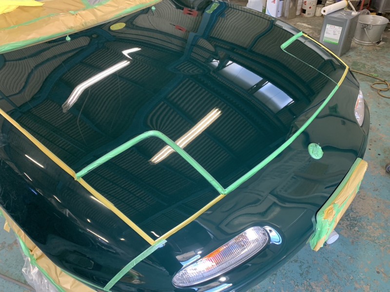 ユーノス ロードスター ボディ磨き施工中 ボンネット