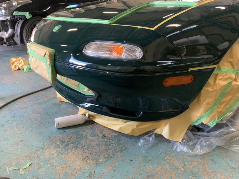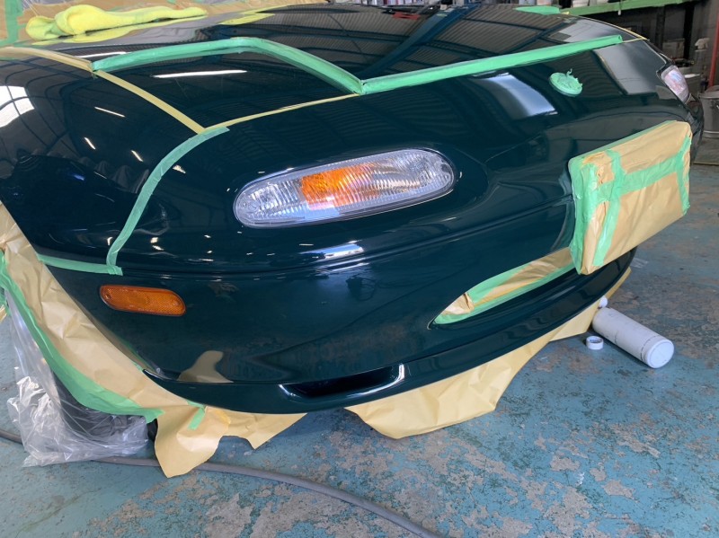 ユーノス ロードスター ボディ磨き施工中 フロントバンパー(運転席側)