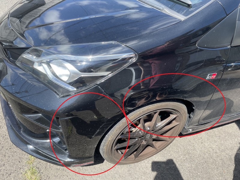 トヨタ GRヴィッツ 左側面修理 フロントフェンダー&フロントバンパー 損傷