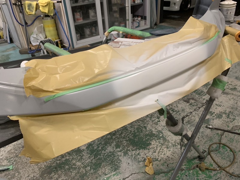 トヨタ 86 フロントスポイラー エンブレム部加工後 塗装完了(助手席側)
