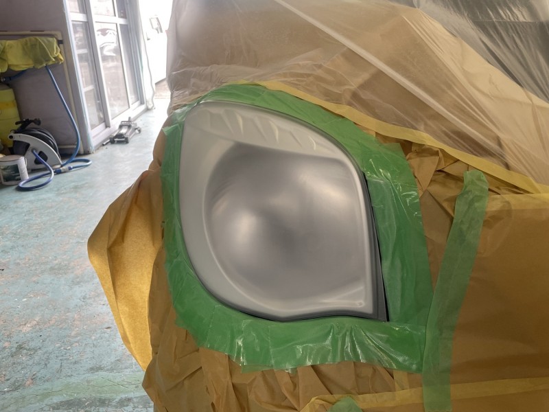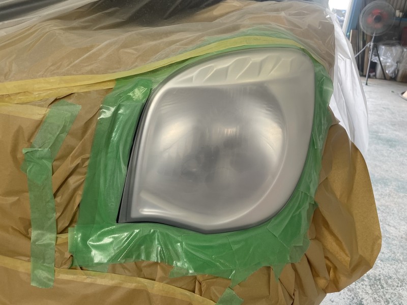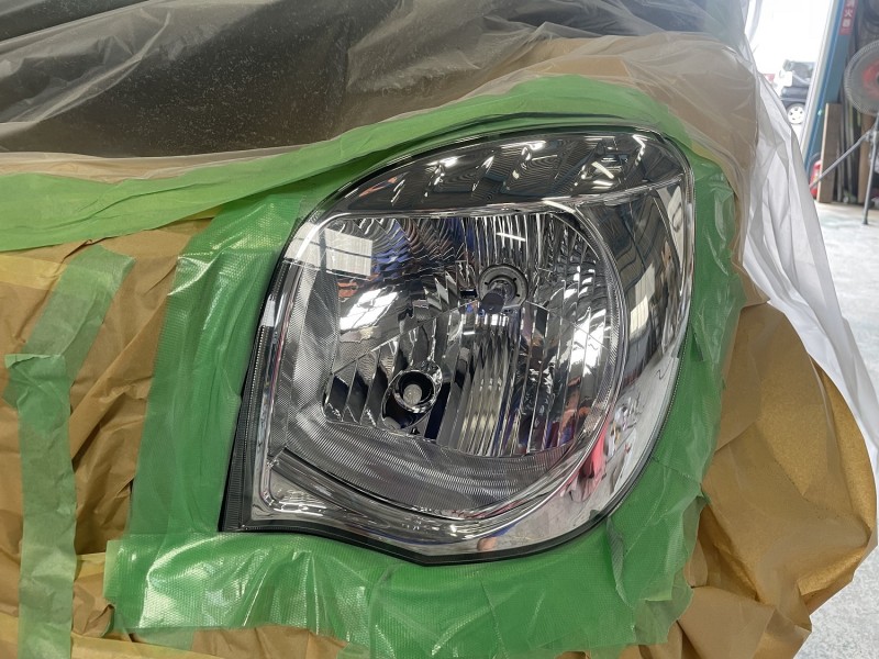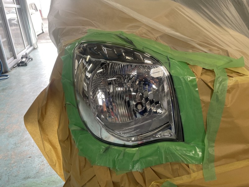 ニッサン モコ ヘッドライト磨き サンディング中(助手席側)