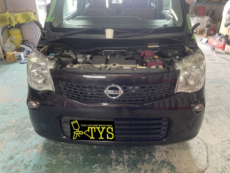 ニッサン モコ ヘッドライト磨き サンディング中(運転席側)