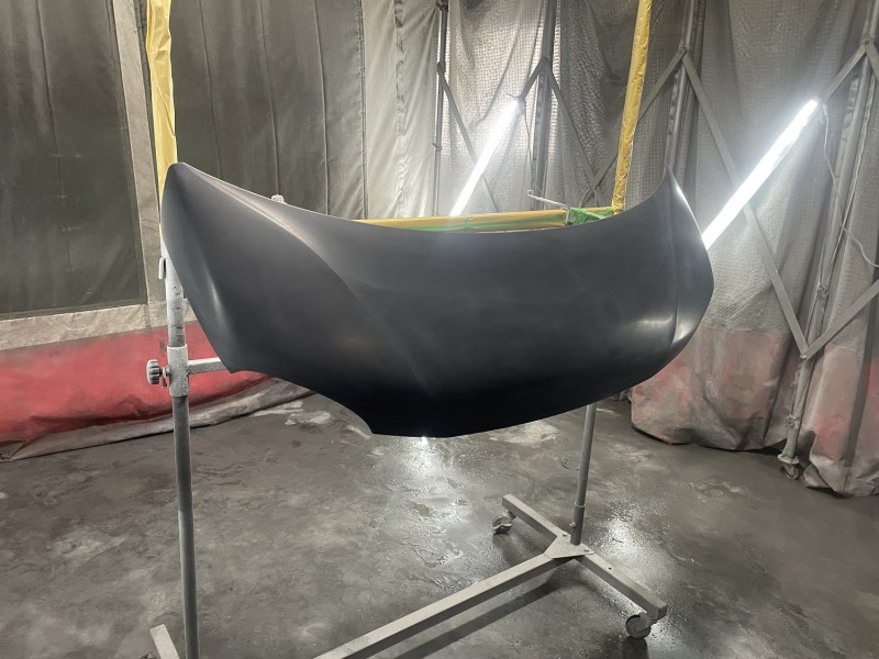 ニッサン モコ ボンネット修理 塗装準備完了(表側)