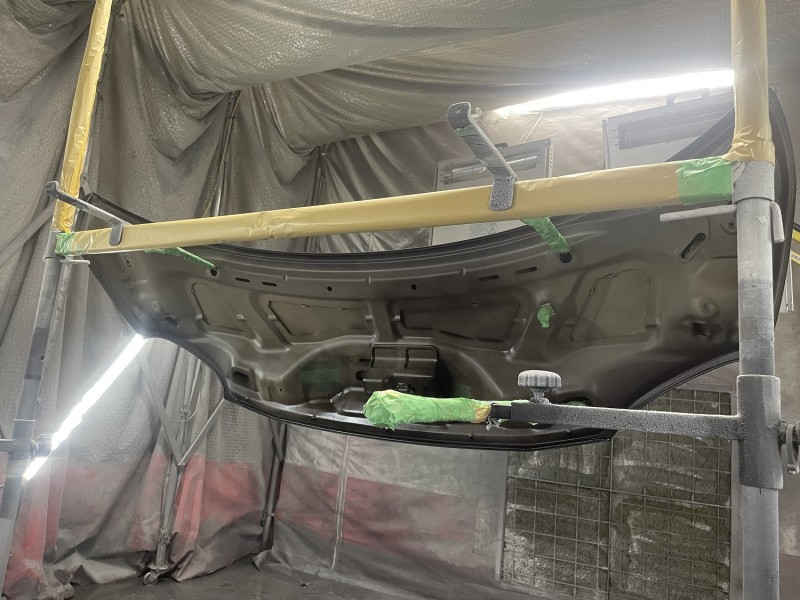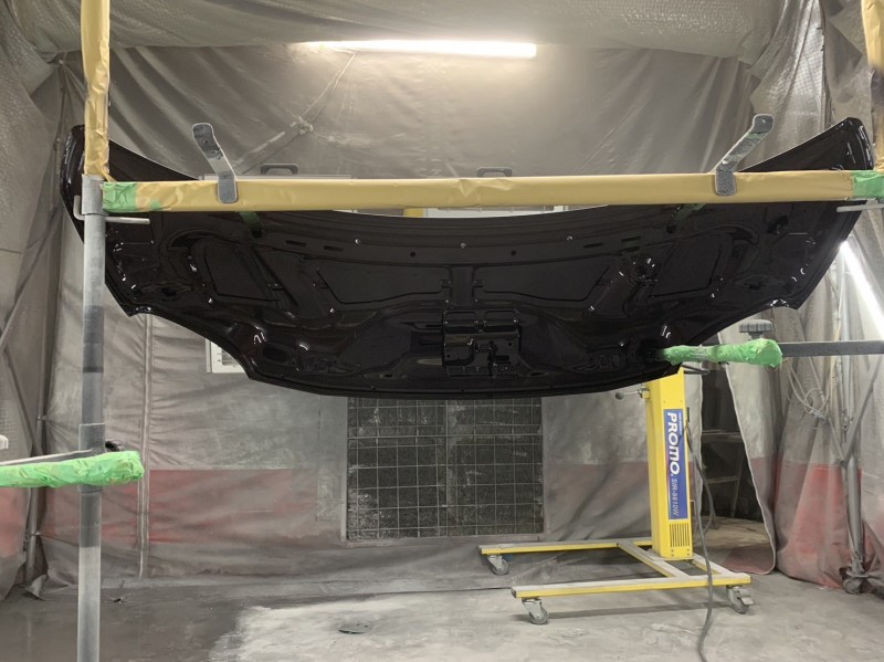 ニッサン モコ ボンネット修理 塗装完了(裏側)