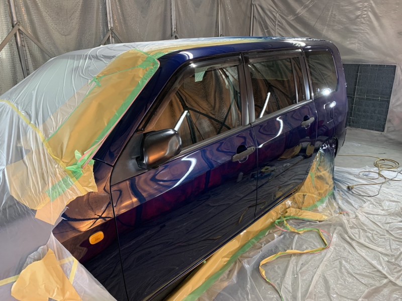 トヨタ プロボックス 左リヤクォーター部 塗装完了(フロント側から)