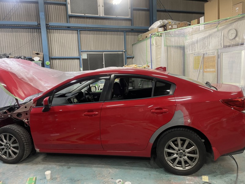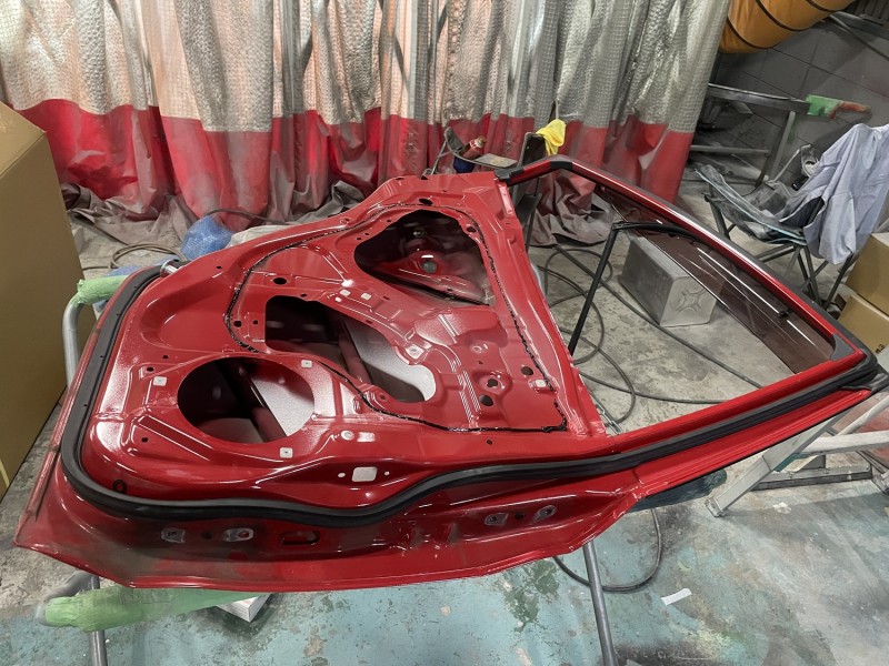 スバル インプレッサG4 損傷リヤドアの部品組換完了