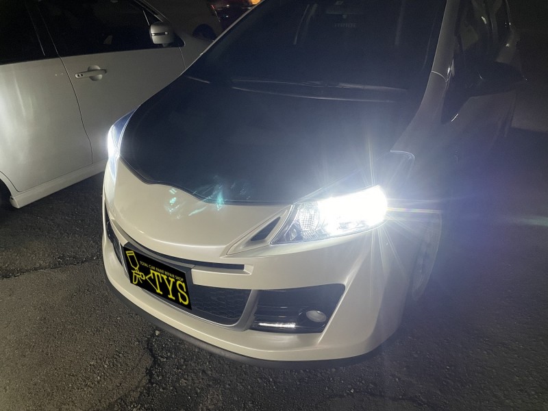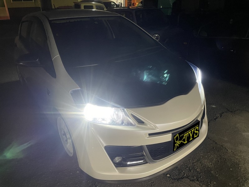 写真を撮ったのが夜だったので見づらいですが、白の車体に黒っぽいカーボンのボンネットが付いたことにより引き締まって見えるようになりました。(^_^)b