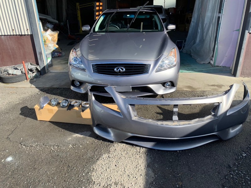 ニッサン V36スカイライン フロント廻り修理 新品フロントバンパー塗装