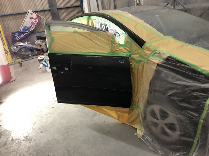 今日は朝から部品発注や納期の確認など事務的な仕事を、お昼近くまでやって午後からプリウスの右Fドア、右Fフェンダーのサフェーサーを研ぎ、塗装するための準備(養生)などを夕方までやって、18時頃新規のお客様がご来店されました。