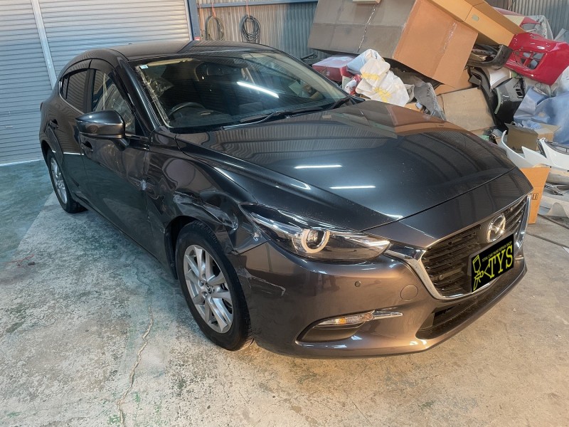 マツダ アクセラ 事故側面修理 フロントバンパー破損