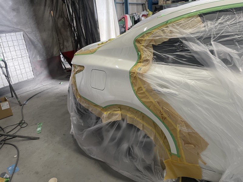 HV37スカイライン リヤクォーター 塗装完了(リヤ側から)