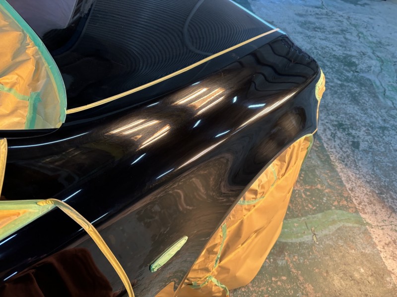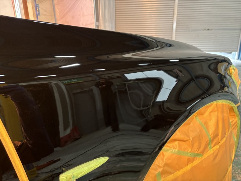 レクサス LS460 ボディ磨き 右フロントフェンダー(アップのアングルで) 初期研磨完了