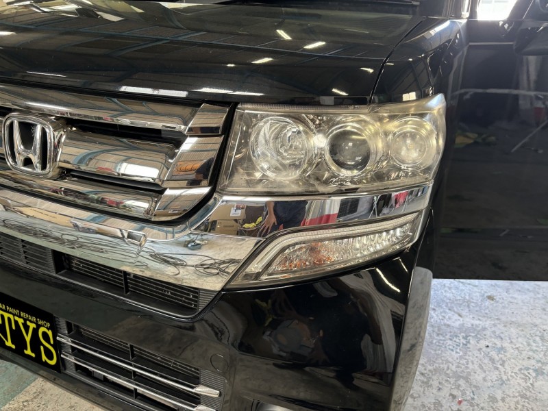 HONDA NBOXのヘッドライト磨きを施工したので投稿致します。m(_ _)m