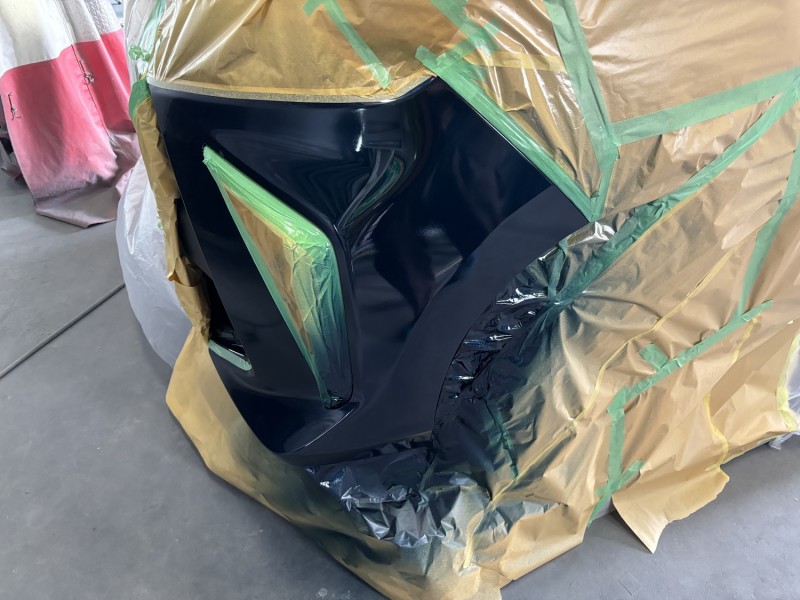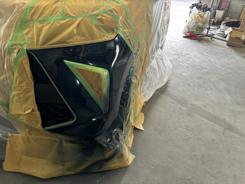 乾燥後、仕上げの磨きをして、フロントバンパーは修理完了です。
