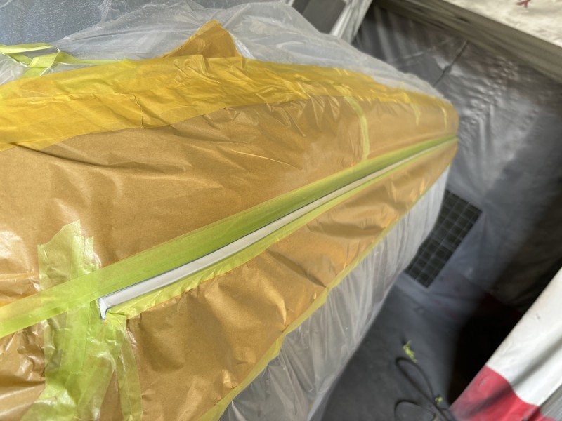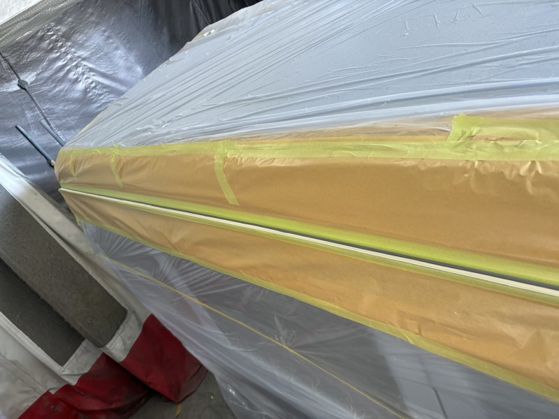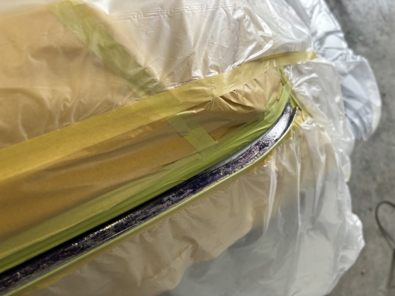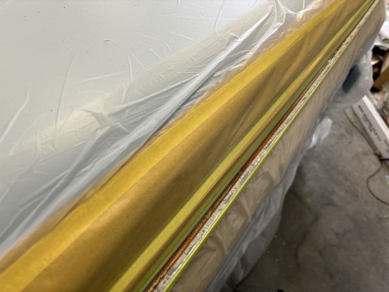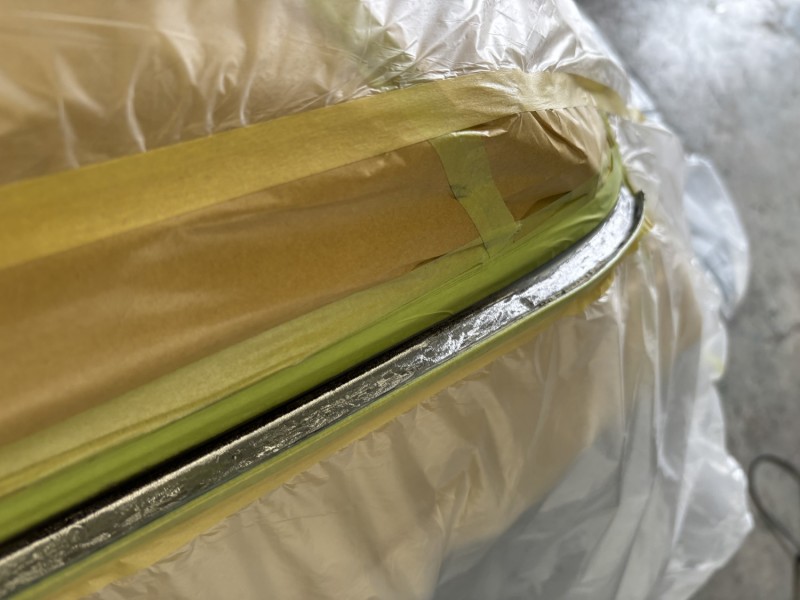 錆転換後サフェーサー処理し、サンディング処理してシーラーを入れたあと、シーリングテープを施工しました。