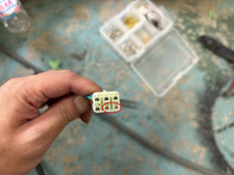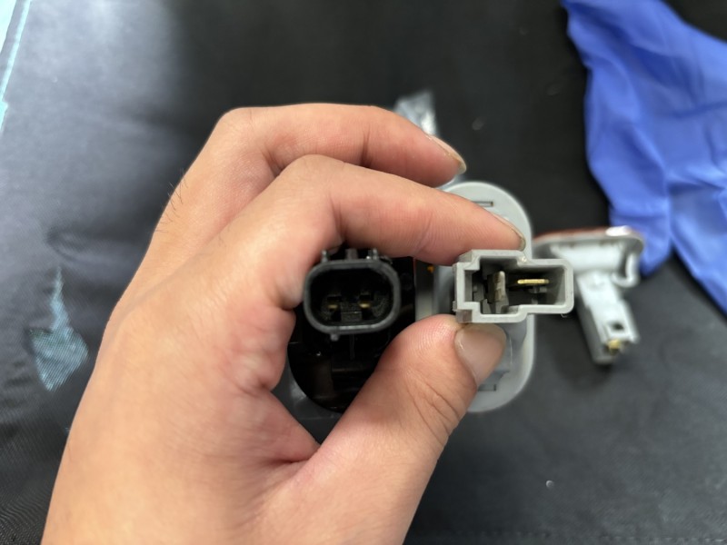 車体側のコネクターは通常の平型端子のオスですけど、サイドマーカー側のコネクターのピンは不要になったハーネスのカプラーからメスのピン&配線を拝借して直結加工します。