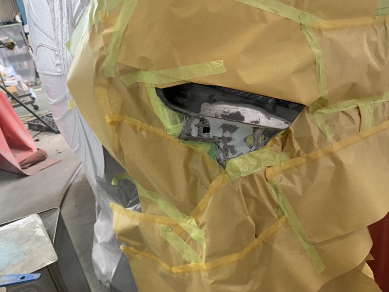 スズキ パレットSW リヤクォーター錆修理 FRP処理部分パテ処理