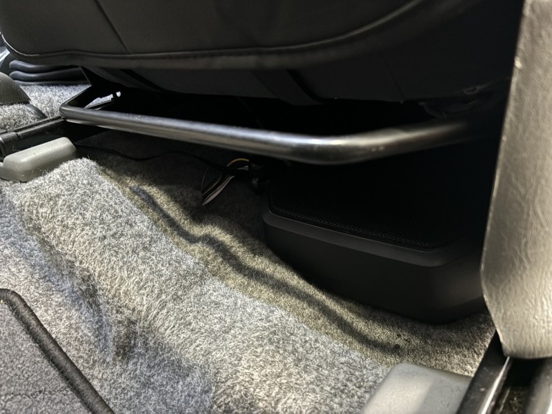 オーナー様の要望で助手席の下のスペースに取付しましたが、重低音が響いて助手席に乗る人がかわいそうなくらいです。(笑)