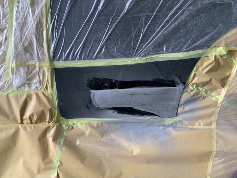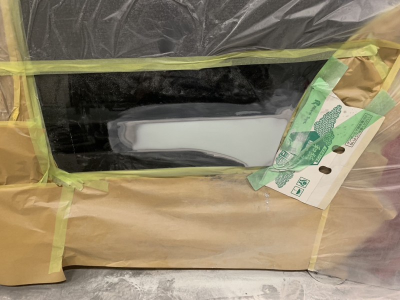 トヨタ ライズ 左リヤドア廻り修理 下地処理完了後、乾燥してサンディング