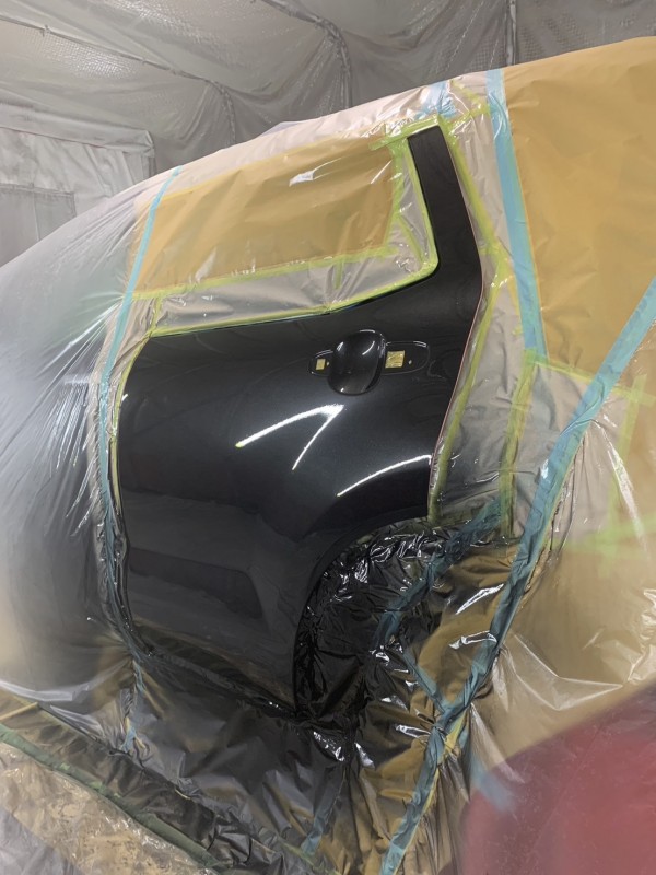 トヨタ ライズ 左リヤドア廻り修理 塗装完了(リヤ側から)