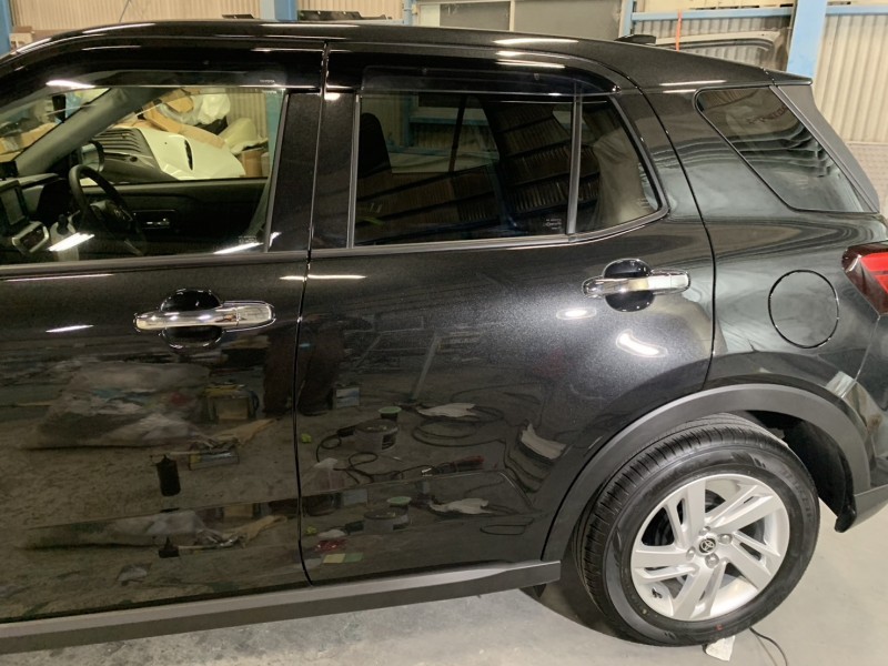 トヨタ ライズ 左リヤドア廻り修理 塗装後の仕上げ完了