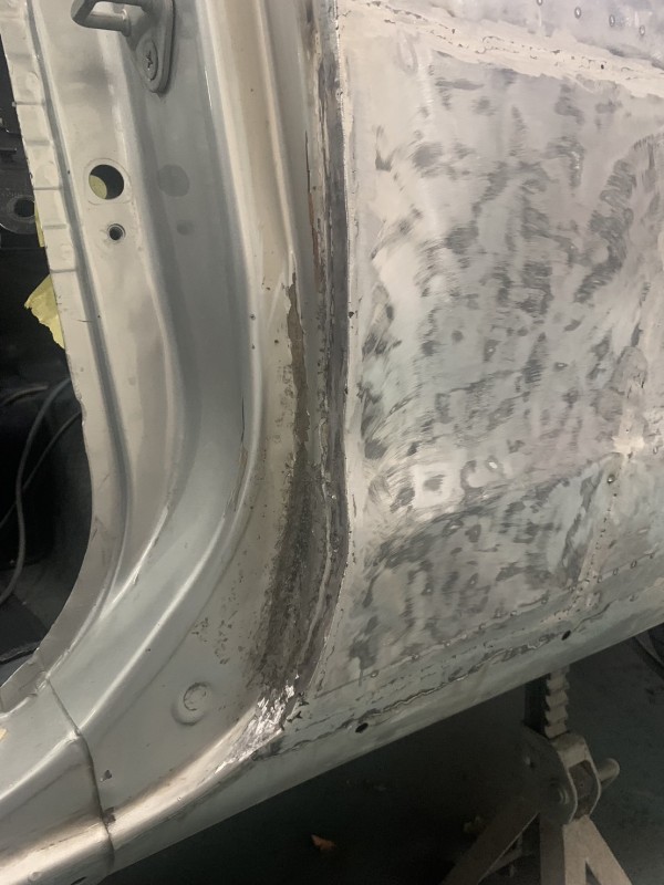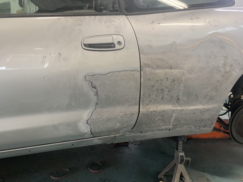 トヨタ セリカ 左側面修理 フロントドア鈑金後 パテ処理
