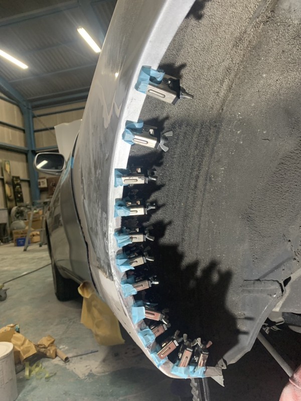 トヨタ セリカ 左側面修理 クォーターパネル アウターとインナの接着