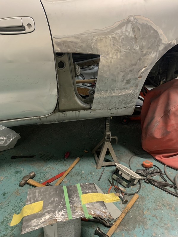 トヨタ セリカ 左側面修理 クォーターパネル鈑金(鉄板貼付)