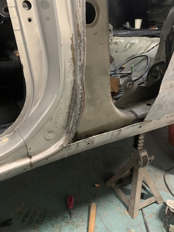 トヨタ セリカ 左側面修理 センターピラー側の鉄板鈑金