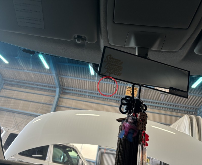取付位置をどこにしようかと思っていたところ、保安基準にてフロントガラス上部より20%以内に貼付なおかつ運転の妨げにならず&360°方向カメラなので見渡せる位置ということでだいたい位置が決まっちゃいました。(笑)