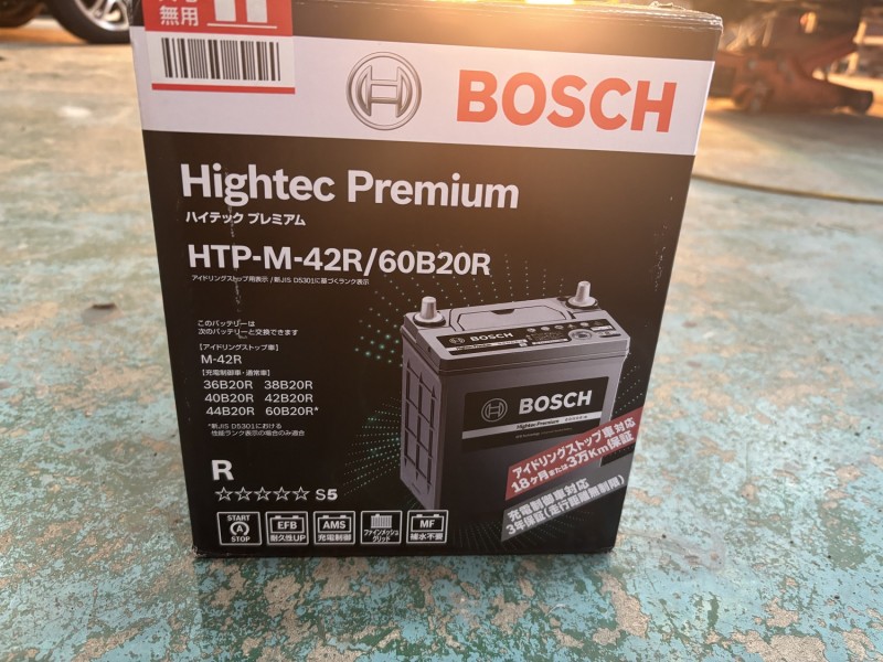 アイドリングストップ車なので、BOSCHのHTP-M-42Rを手配して取り付けます。