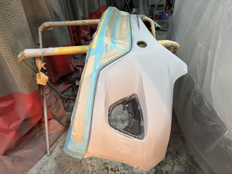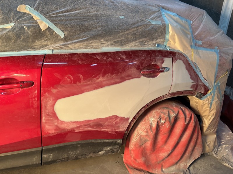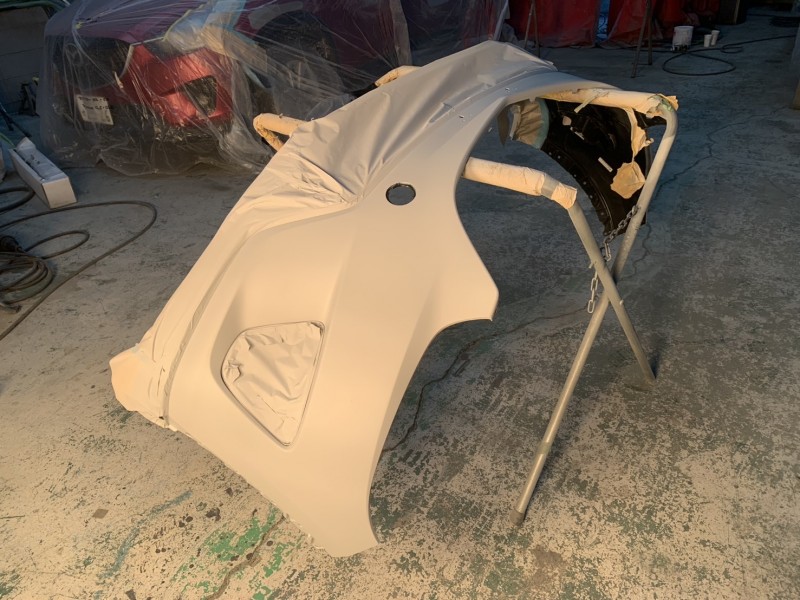 マツダ CX-5 左側面損傷 鈑金&新品フロントバンパーの塗装準備