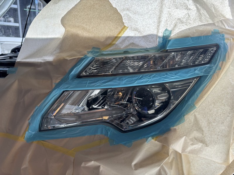 ニッサン エルグランド 助手席側ヘッドライトレンズ磨き 施工完了