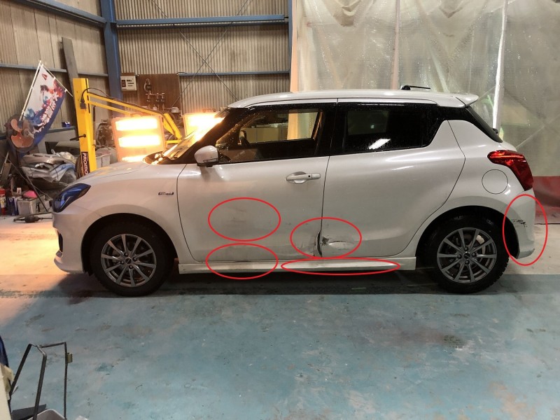 帰宅後、レガシーの板金をしているとお客さんが来店。