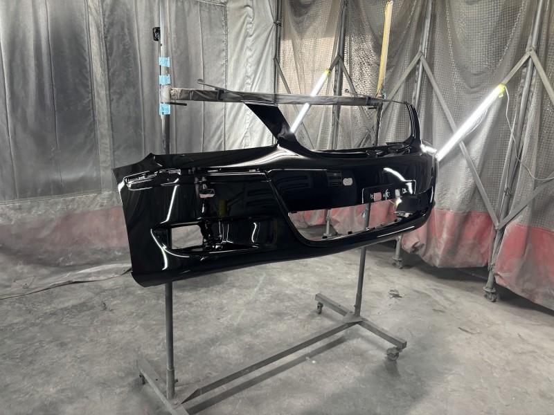 新品バンパーは塗装なしの未塗装樹脂設定なので下処理としてプライマー、サフェーサーの下地処理を施工して塗装致しました。(^_^)/