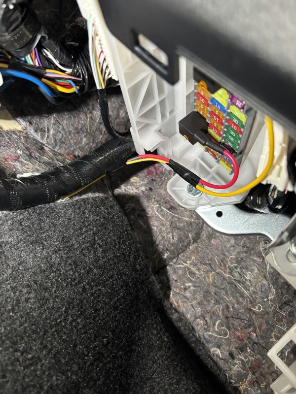 説明書によると追加する配線は助手席側のヒューズボックスから常時電源とACC電源を拝借するらしく、まず電源を確保します。
