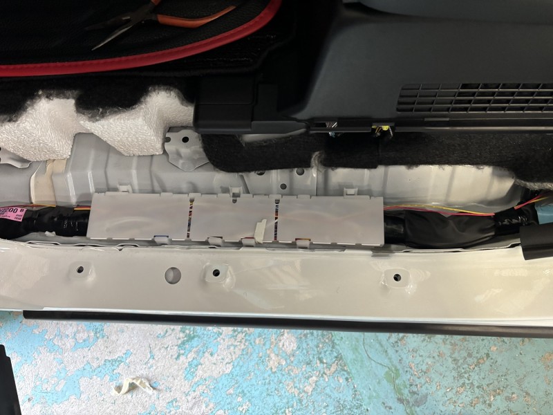 取得した電源は各テールランプと結線するので配線ルート的には助手席の外側下部を通るイメージで配線していきます。