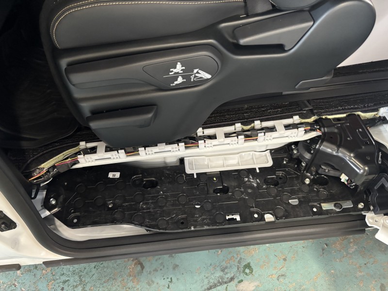センターピラーの下部を通して、リヤスライドドアのステップ下部を通します。