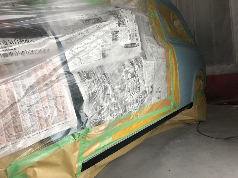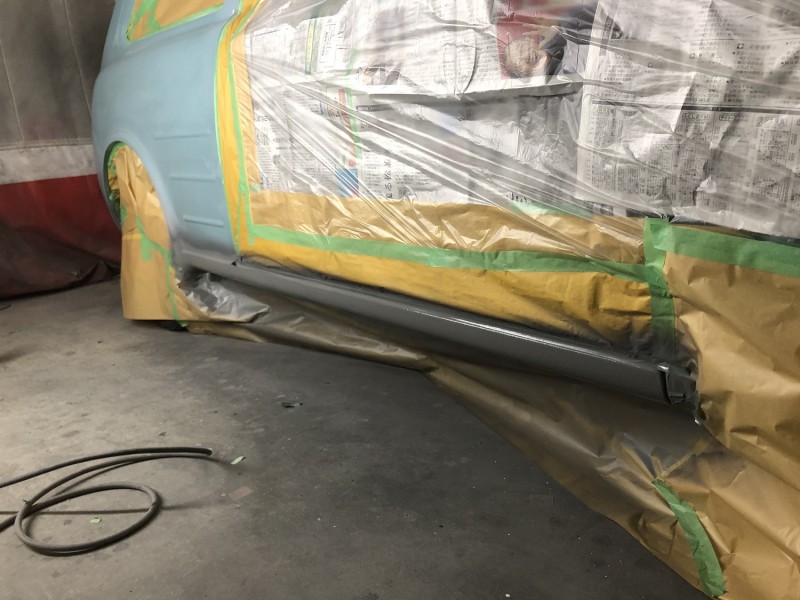 先日ロッカパネルをアンダーチッピング施工したので下色を作って、塗装します。