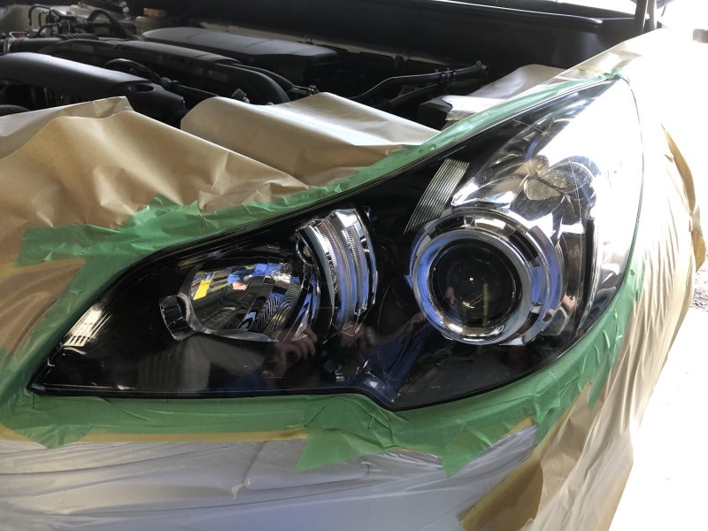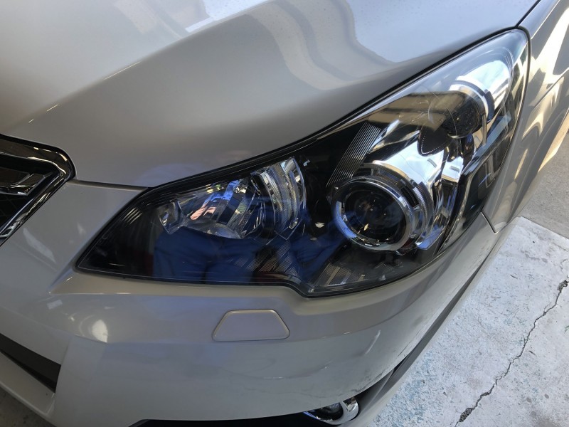 今日は朝からレガシィのヘッドライトを磨いて、新規のお客様来店。