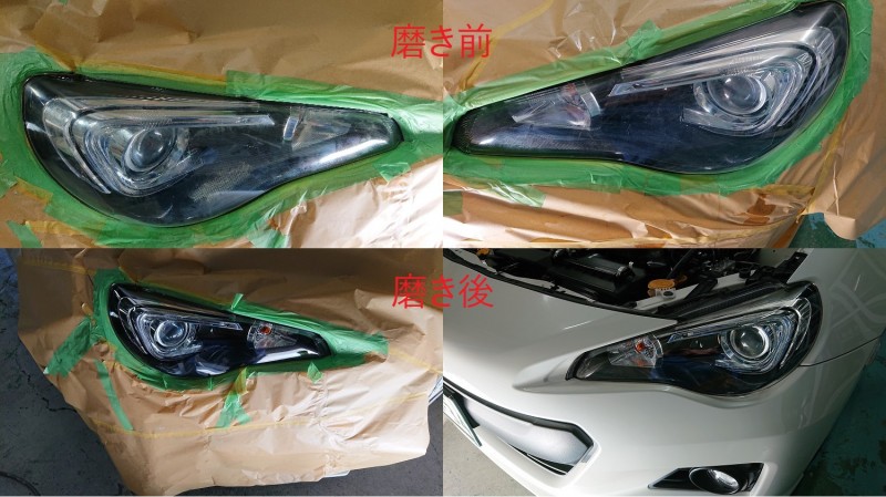 今日は朝からBRZのリアバンパーの仕上げとヘッドライト磨きをしました。