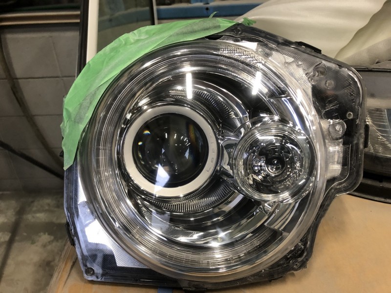 前回入庫したラパンのヘッドライドのキズが消えるかやってみました。