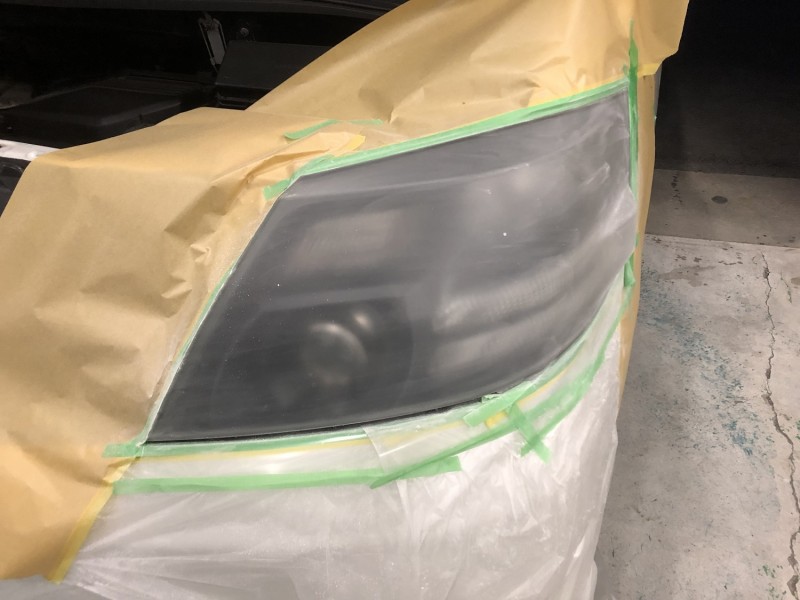 我慢できなくて、割れがある程度なくなるまで両側のヘッドライト研ぎました。(笑)