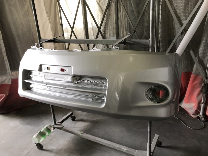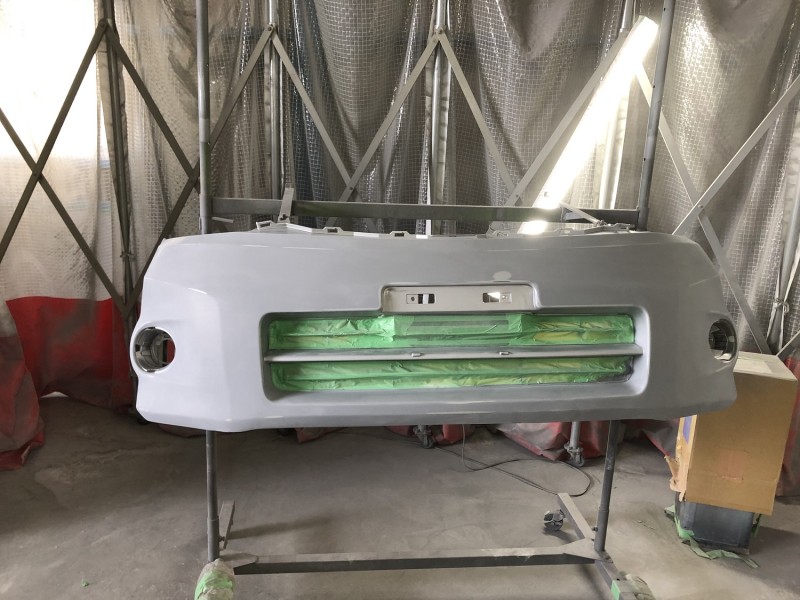 今日はプレサージュのフロントバンパーのサフェーサーを研ぎ、塗装しました。