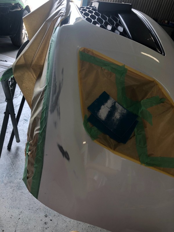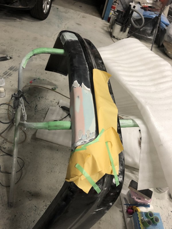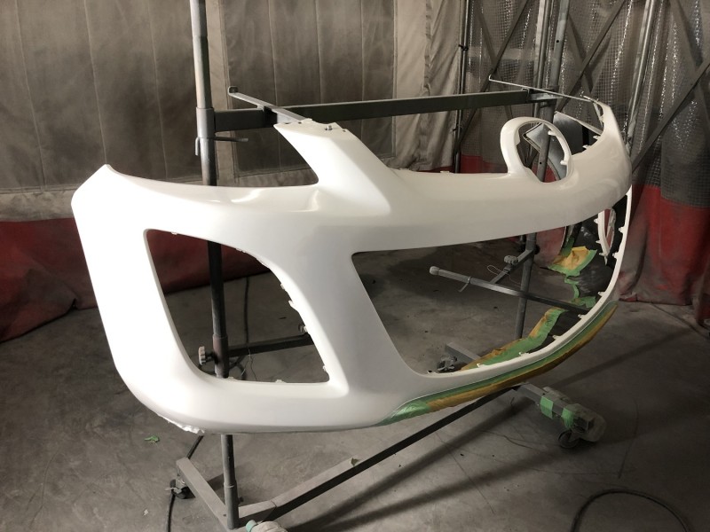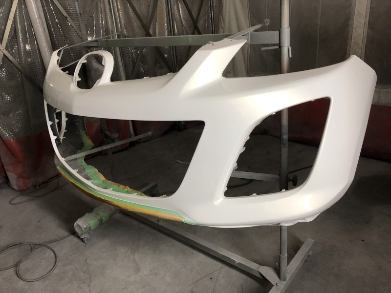 フロントバンパーせっかく塗るので、いろんなキズを補修しちゃいます。(笑)