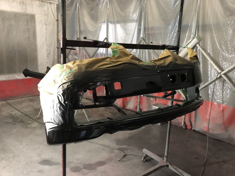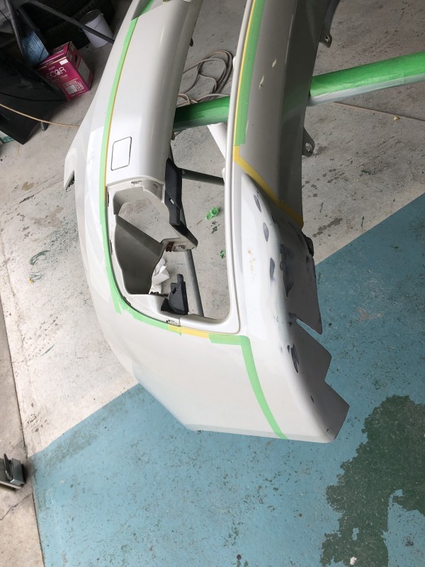 今日はコルトのフロントバンパー塗り分けとサイドスカートの塗装をしました。