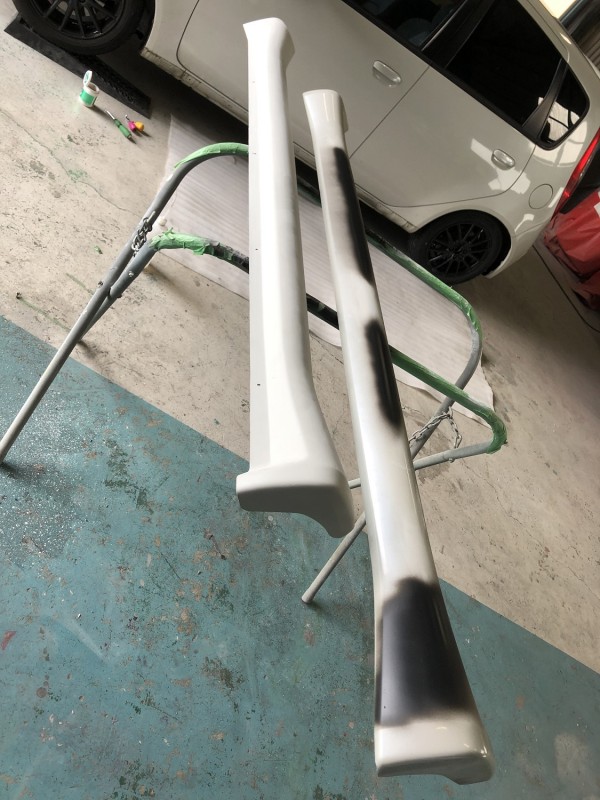 サイドスカートも片側キズ有りだったので補修とサフェーサー処理をしました。