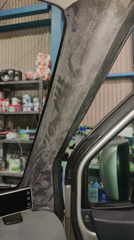ワゴンRのAピラーにモケットの生地を貼りました。
