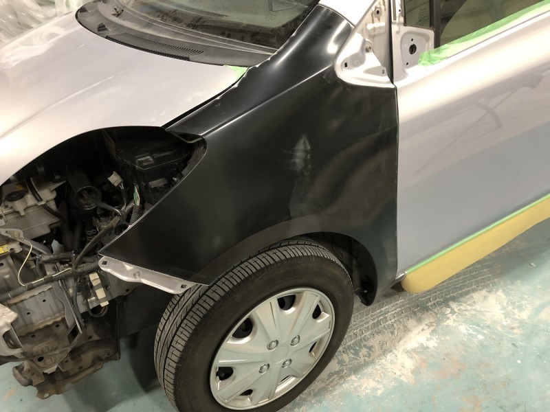 ヴィッツ フェンダー仮合わせ、ヴォクシー 板金完了
